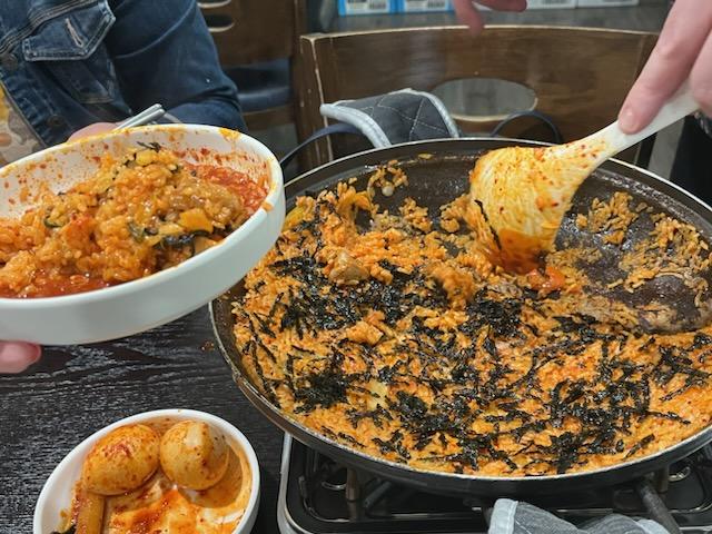 The restaurant’s house-made banchan, the traditional Korean side dishes, are a hit with patrons and even available for purchase. In addition to the chicken casserole, the seafood soup with clams, shrimp, and mussels in a clear, flavorful broth is another crowd favorite. The chefs at Mhat Korean Restaurant are known for their attentiveness and hospitality, ensuring a friendly and efficient service. After finishing the hot pot, they also make fried rice with the leftover sauce and vegetables, allowing it to crisp up for a perfect finishing touch to the meal.
